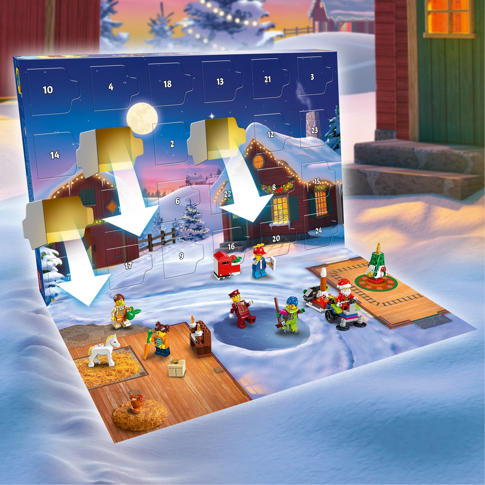 - Dimensions – The LEGO® City Advent Calendar box measures over 10 in. (26 cm) high, 14.5 in. (38 cm) wide and 2.5 in. (7 cm) deep