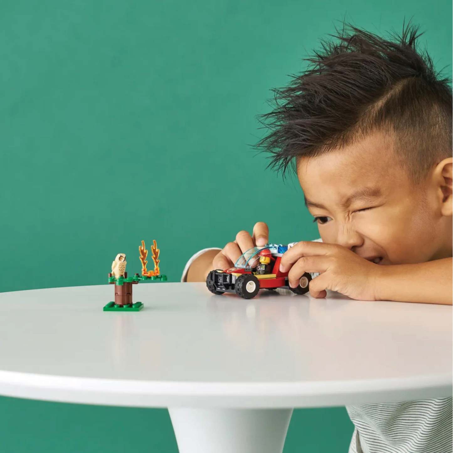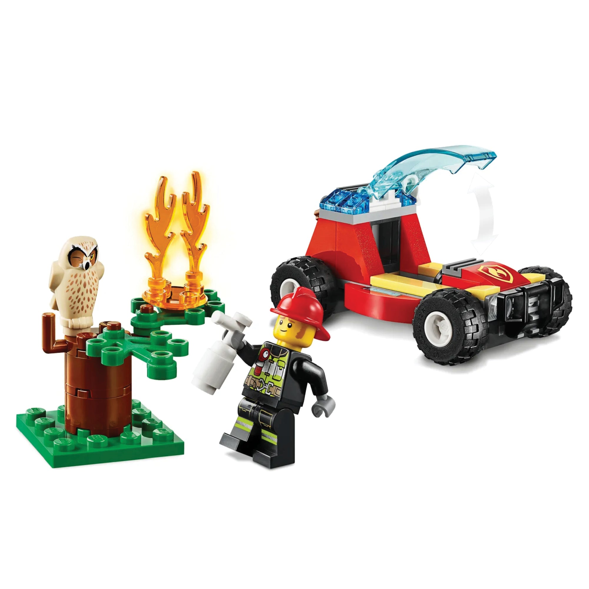 Youngsters can become firefighting heroes with this awesome LEGO® City Forest Fire (60247) playset. There’s a cool firefighter buggy with a minifigure cockpit and toy water cannon fire extinguisher, plus a tree with flames and a sleepy owl on its branches. And, with LEGO City TV hero Clemmons on the scene, this set can really fire kids imaginations! Fun firefighting playset for kids This playset makes a great Christmas, birthday or any-other-day gift for kids who love action toys. The easy-to-follow building guide ensures that even budding LEGO builders can enjoy an immersive and independent build-and-play experience. Cool firefighter toys for kids With LEGO City fire sets, kids get to enjoy open-ended adventures and action-packed scenarios that reflect real-life situations. The wide range of feature-rich buildings, realistic vehicles and fun characters put kids into a world where creativity and imagination will thrive.