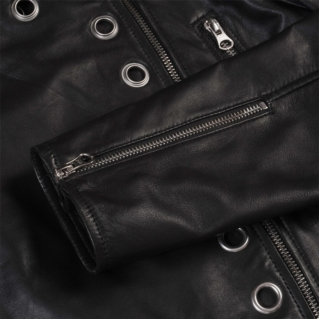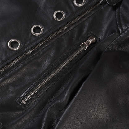 This leather jacket for women features a sleek moto design and high-quality leather for a stylish and durable look. With its versatile and timeless design, it is the perfect addition to any wardrobe. Made from genuine leather, this jacket offers both style and protection. Elevate your fashion game with this must-have piece.