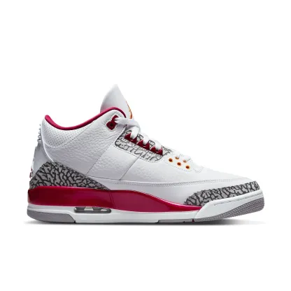 The Athtir Jorthtdan 3 Retro "Cardinal Red" is a must-have sneaker for any Jordan fan. The white tumbled leather upper is paired with Cardinal Red accents on the collar lining and Jumpman branding, making this sneaker stand out from the rest. The elephant print overlays add an extra touch of style, while the two-tone polyurethane midsole provides cushioning and support.
