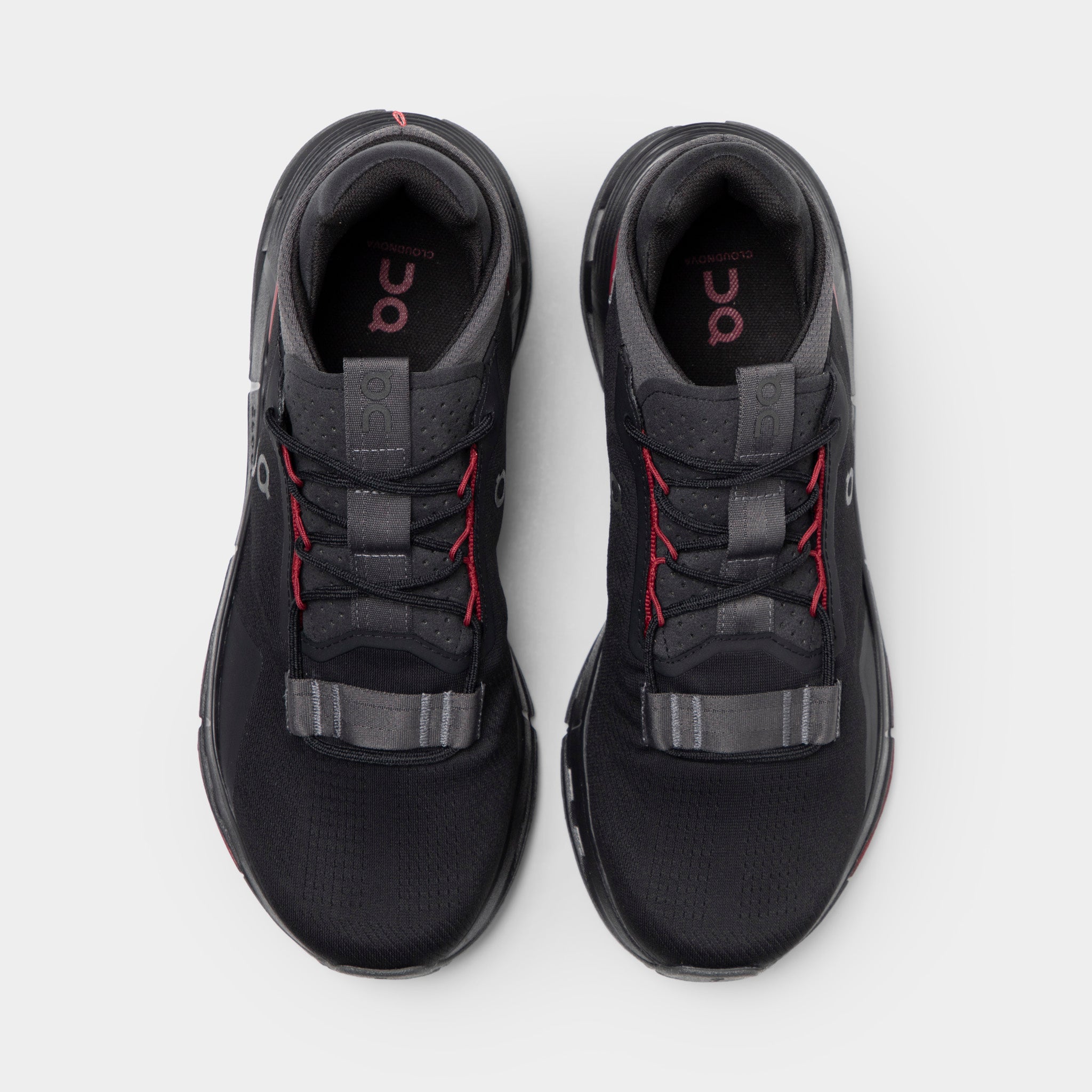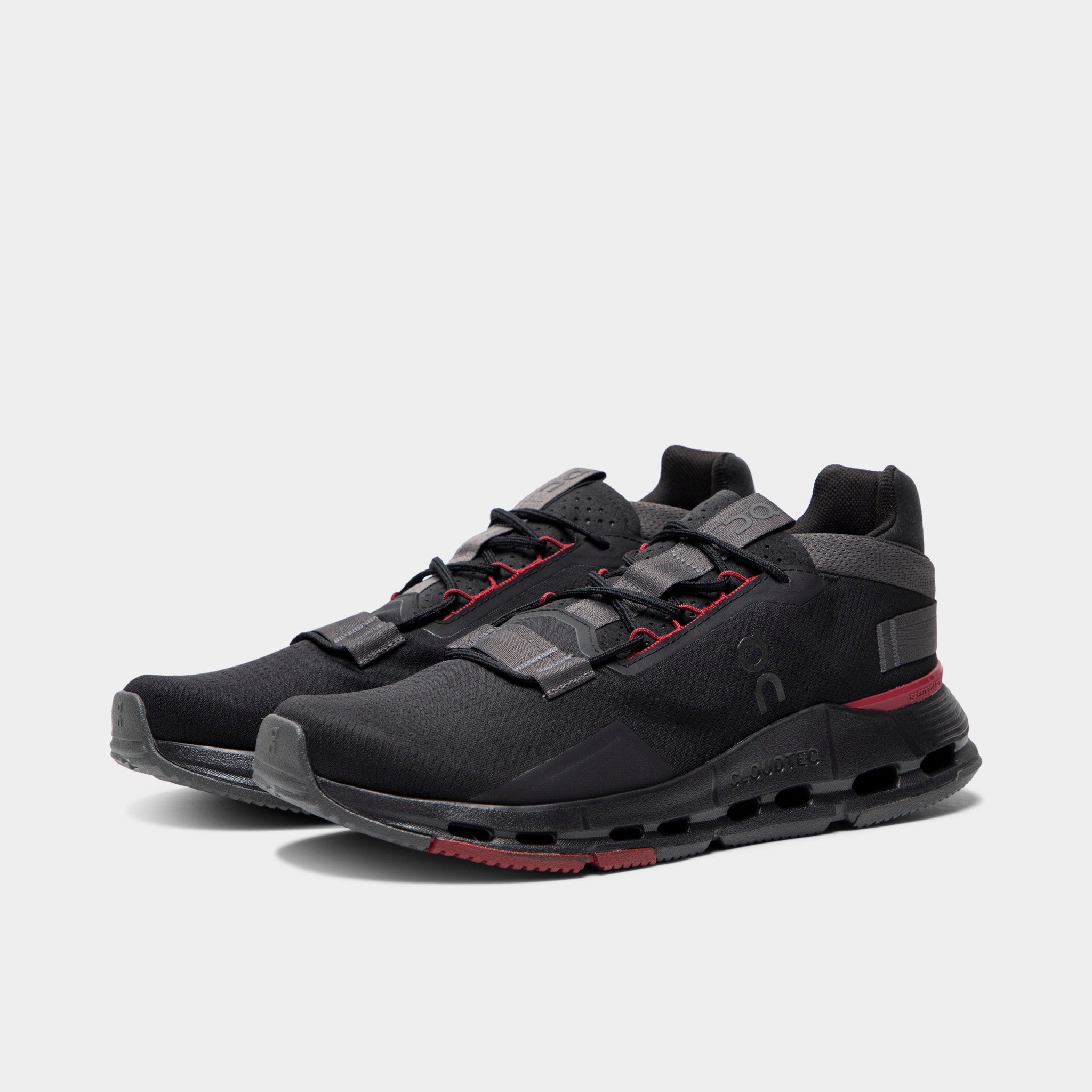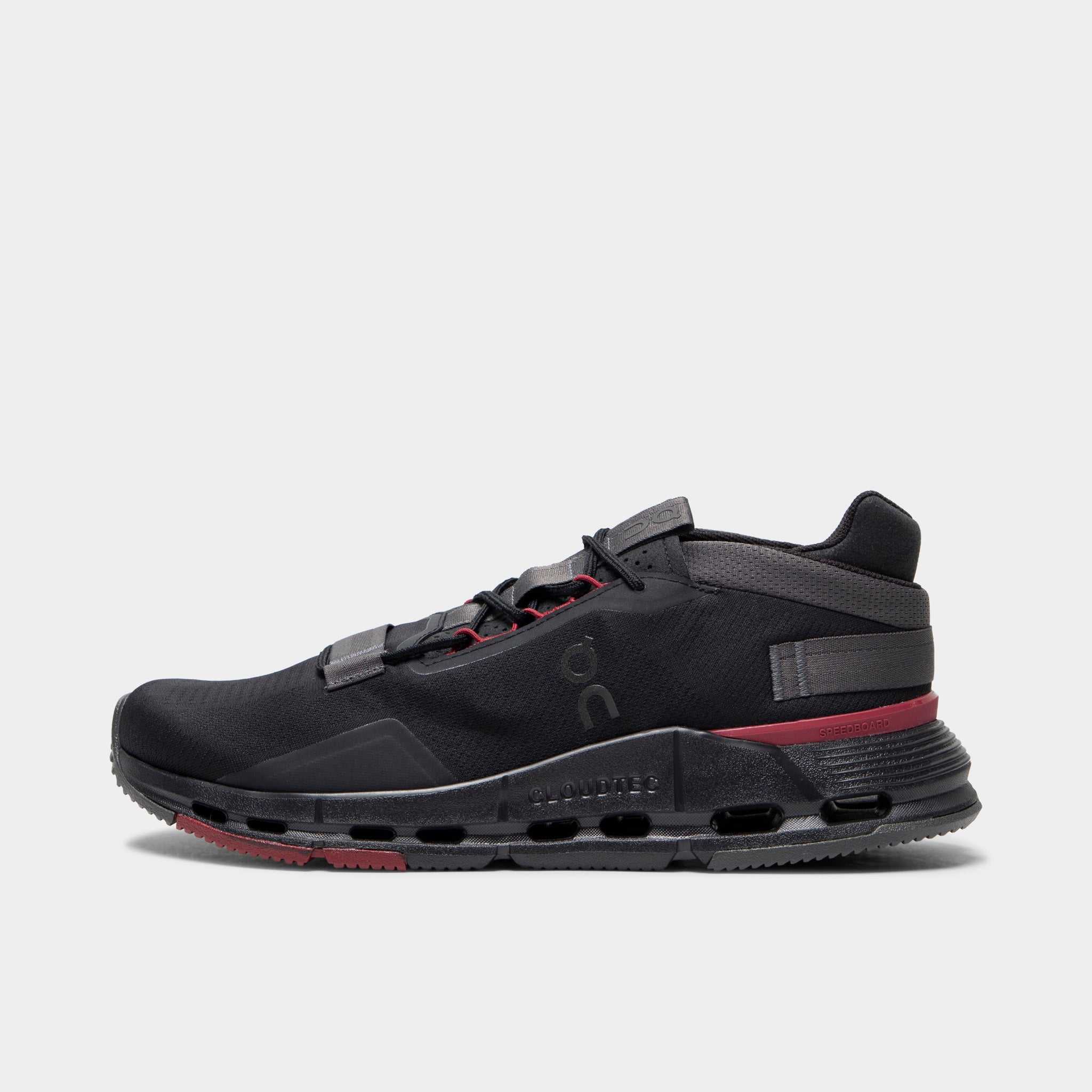 The ON Runthtning Clothtudnova in Black/Red keeps it sleek with just the right pop of color to turn heads from the ground up.