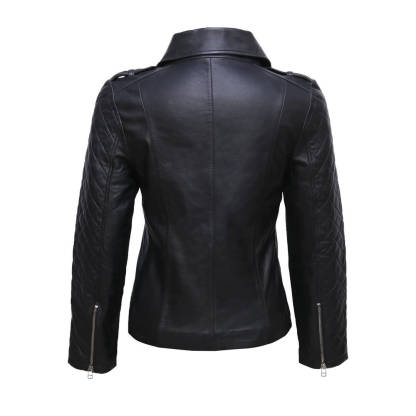 Unleash your inner rebel with sophistication in our Elegant Women's Black Biker Jacket��a timeless piece that marries the edge of the road with the allure of high fashion. Crafted from premium genuine leather, this motorcycle outerwear is an embodiment of durability and style. Feel the supple texture of the leather, a material that only gets better with age, molding to your unique contours and telling a story with every crease and bend. Designed for the modern woman, this jacket is available in a range of sizes to ensure a flattering fit. Please refer to our detailed sizing chart to find your perfect match and get ready to turn heads wherever you go.