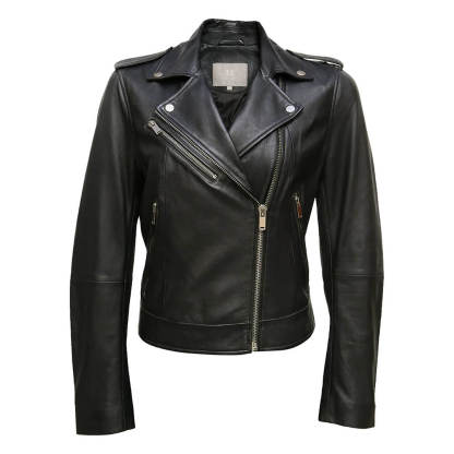 Expertly crafted from high-quality black leather, this women's motorcycle jacket combines style and functionality. With a sleek bomber design, this jacket offers both comfort and protection while riding. Stay in control and look great on the road with this must-have accessory for any female rider.